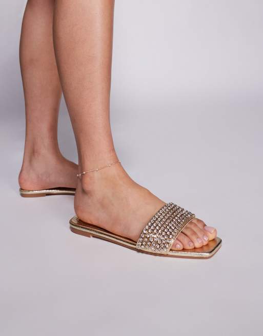 Simmi London - Paison - Platte sandalen met brede pasvorm en siersteentjes in goud metallic