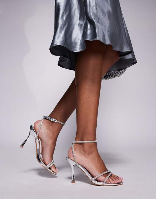 SIMMI London - Yara - Minimalistische sandalen met brede pasvorm en versiering in zilver