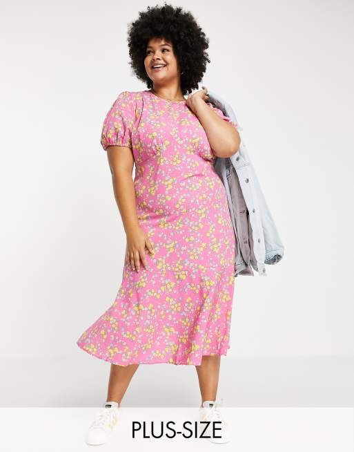 Simply Be - Midi jurk met gestrikte achterkant en fijne print in roze
