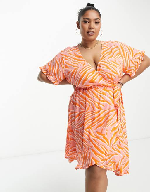 Simply Be - Mini jurk met overslag, ruches en zebraprint in roze
