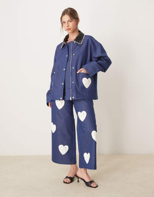 Sister Jane - Jack met hartjesborduursels in denimblauw, deel van co-ord set