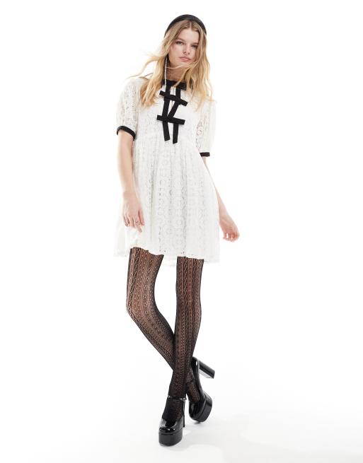 Sister Jane - Kanten mini jurk met contrasterende strik in porselein
