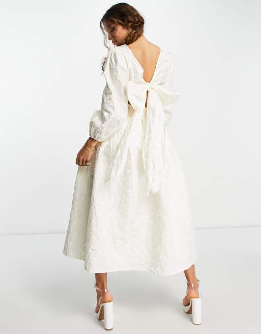 Sister Jane - Lange bruidsjurk in gebloemde jacquard met strik op de rug