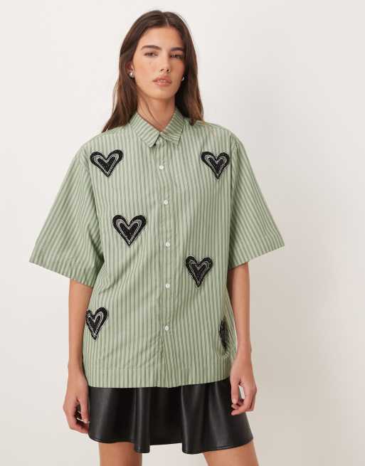 Sister Jane - Maris - Uniseks recht overhemd van katoenmix met hartenversiering in groen