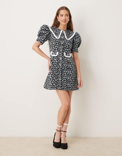 Sister Jane - Mini-jurk met contrasterende oversized kraag in zwart met bloemenprint