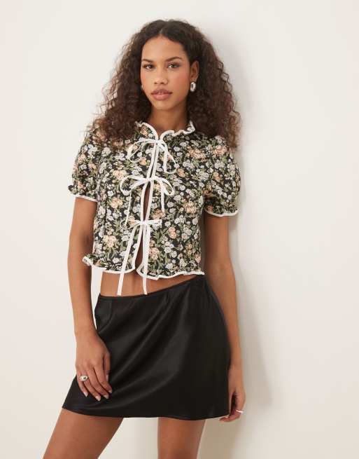 Sister Jane - Top met contrasterende strikken en bloemenprint in zwart