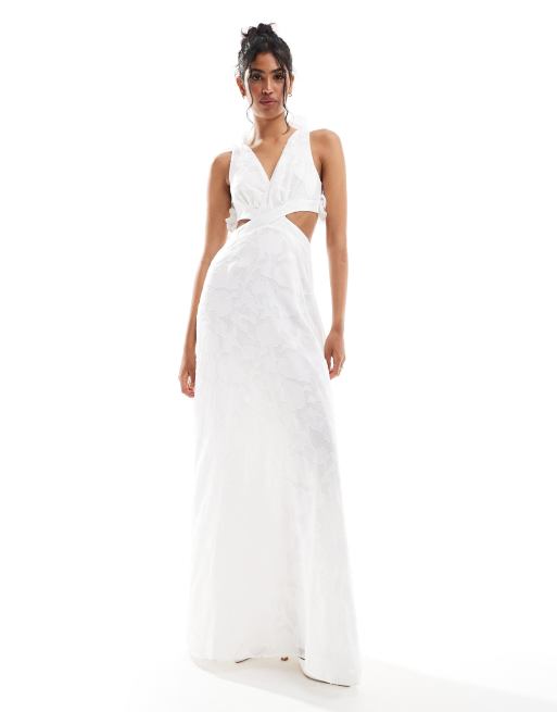 Six Stories - Bruidskleding - Maxi-jurk met ruches op de achterkant, bloemen en uitsnijdingen in wit