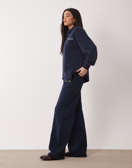 Six Stories - Bruidskleding - Sweatpants met 'Wifey Club'-tekstprint in marineblauw, deel van co-ord set