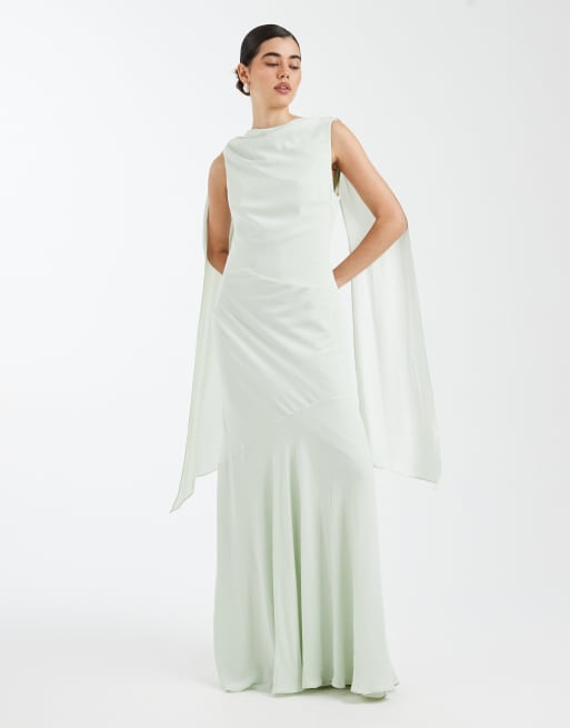 Six Stories - Bruidsmeisjes - Maxi jurk van crêpe met hoge gedrapeerde halslijn in mintgroen