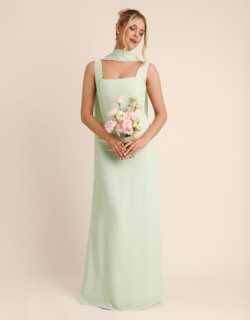 Six Stories - Bruidsmeisjes - Maxi-jurk van crêpe met vierkante hals en sjaalkraag in mintgroen