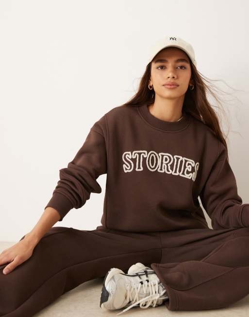 Six Stories - Sweatshirt in espresso bruin, deel van co-ord set