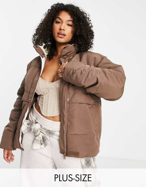 Sixth June Plus - Oversized gewatteerde jas met contrasterende voering