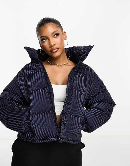 Sixth June - Oversized gewatteerd puffer jack in iriserend marineblauw