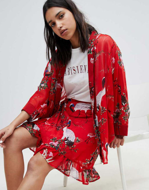Sofie Schnoor - Combi-set van kimono en wikkelrok met exotische vogelprint
