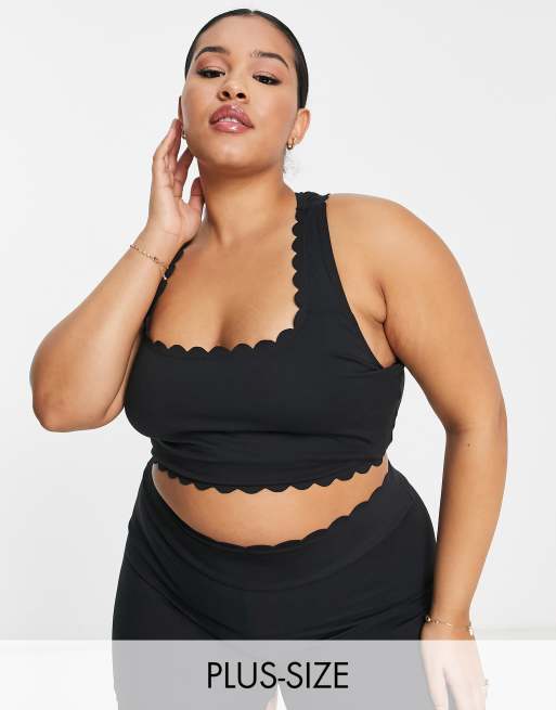 South Beach Plus - Crop top van polyester met geschulpte rand in zwart