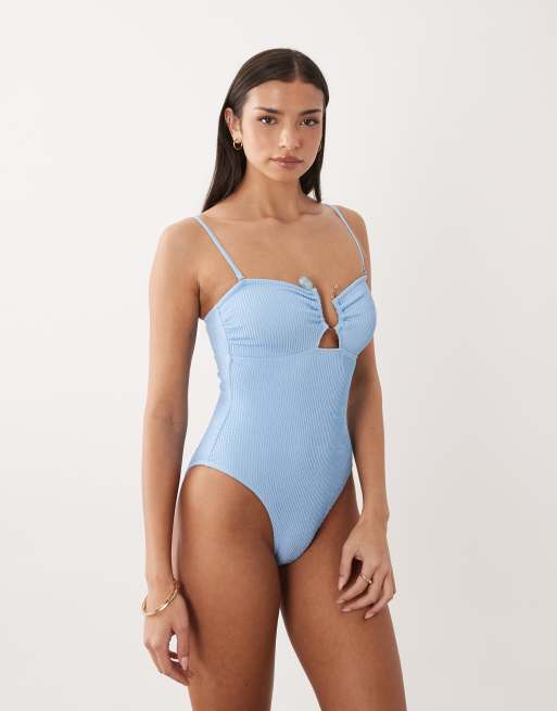 South Beach - Bandeau-badpak met uitsnijding in middenblauw