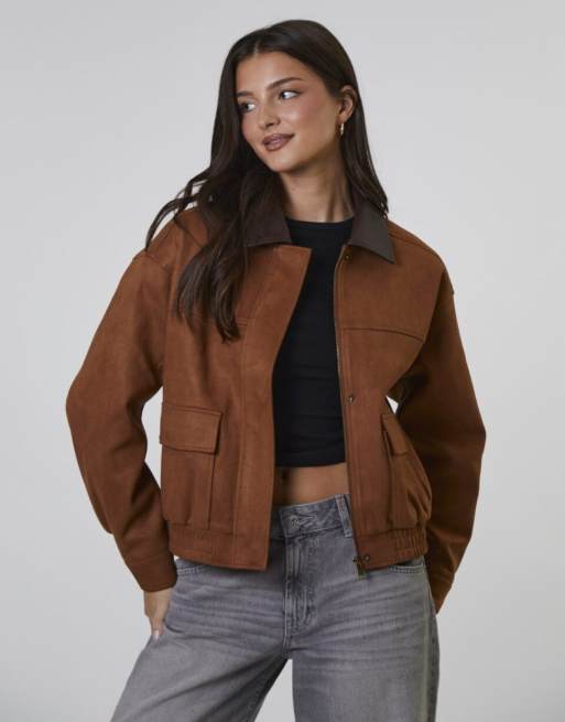 South Beach - Bomberjack van imitatiesuède met afwerking van PU in lichtbruin