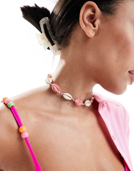 South Beach - Chokerketting met schelpjes in felroze