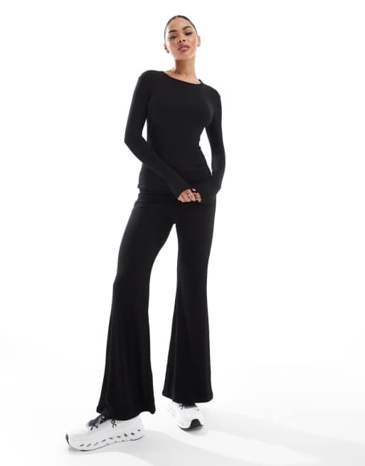 South Beach - Dubbellaagse geribbelde flarebroek van jersey met overslag in zwart