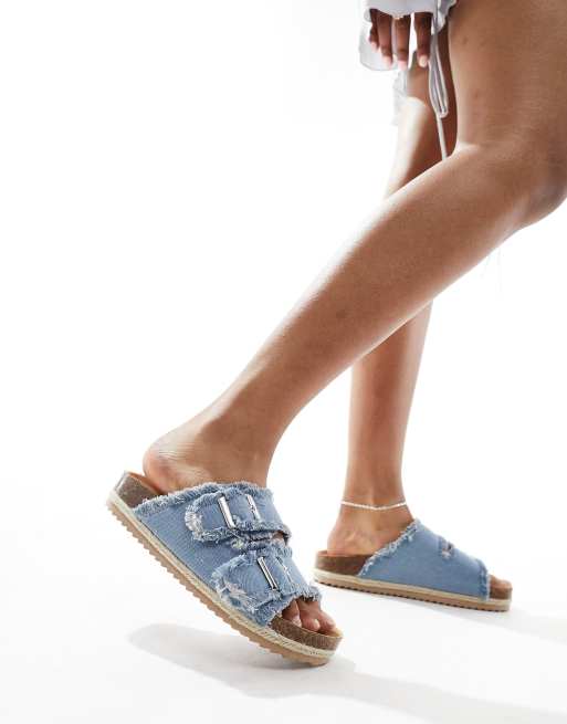 South Beach - Espadrille-sandalen met dubbele gesp in gerafeld denim