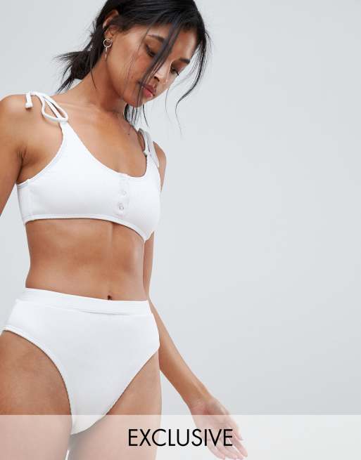 South Beach - Geribbeld hoogopgesneden bikinibroekje in wit