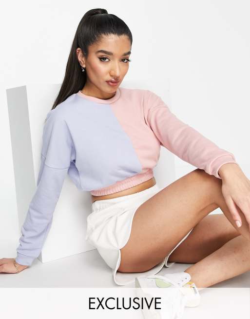 South Beach - Gesplitste, recht, cropped sweatshirt in pastelkleuren