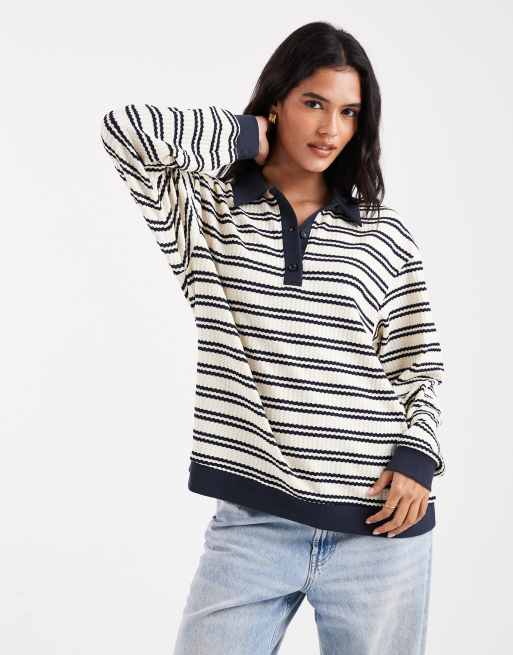 South Beach - Gestreept gebreid rugbyshirt in marineblauw