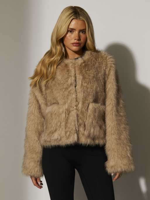 South Beach - Jack van imitatiebont met twee zakken in beige