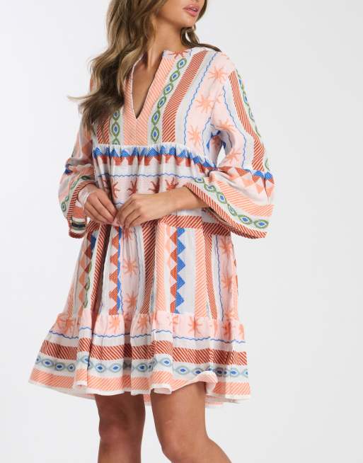 South Beach - Jacquard mini jurk met 3/4 mouwen en stroken in multi