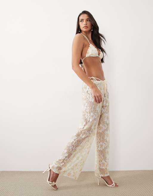 South Beach - Kanten strandbroek met glitter in wit