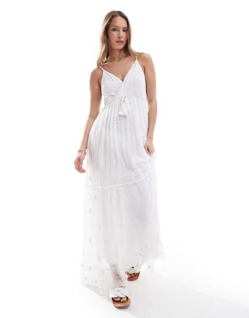 South Beach - Lange cami-jurk met V-hals en lovertjes in wit