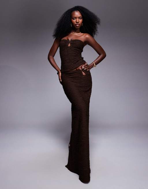 South Beach - Lange strandrok met hardware-detail in mokka
