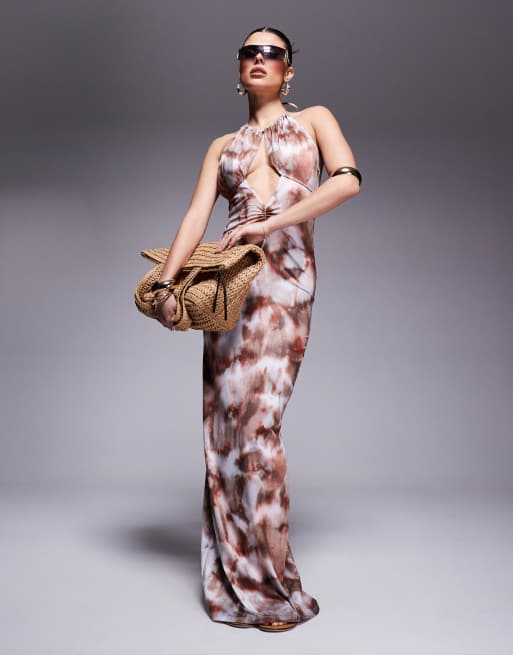South Beach - Maxi-strandjurk van mesh met uitsnijding in multi