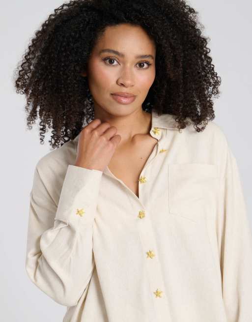 South Beach - Overhemd van linnenmix met zeester-knopen in beige