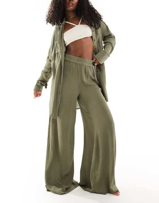 South Beach - Oversized strandbroek in olijfgroen