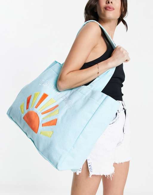 South Beach - Strandtote van badstof met borduurwerk in felblauw