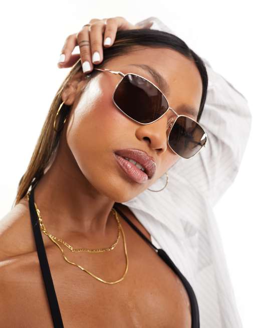 South Beach - Vierkante piloten zonnebril van metaal in goud