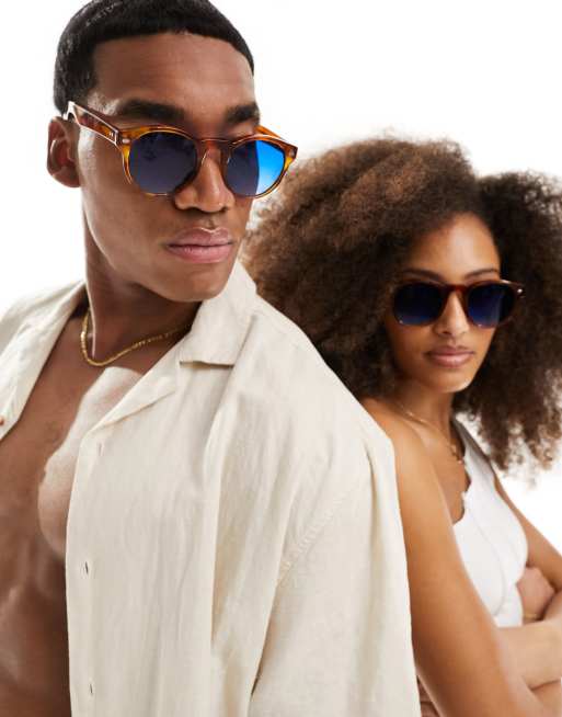 Spitfire - Cut Ninety Five - Ronde zonnebril in tortoise met blauwe glazen