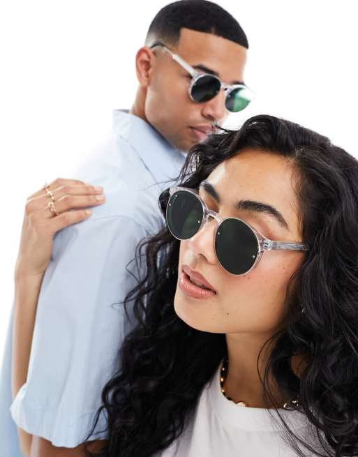 Spitfire - Post Punk - Ronde herenzonnebril in doorzichtig met groene glazen