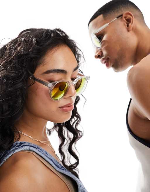 Spitfire - Teddy Boy - Ronde zonnebril met doorzichtig montuur en oranje spiegelglazen