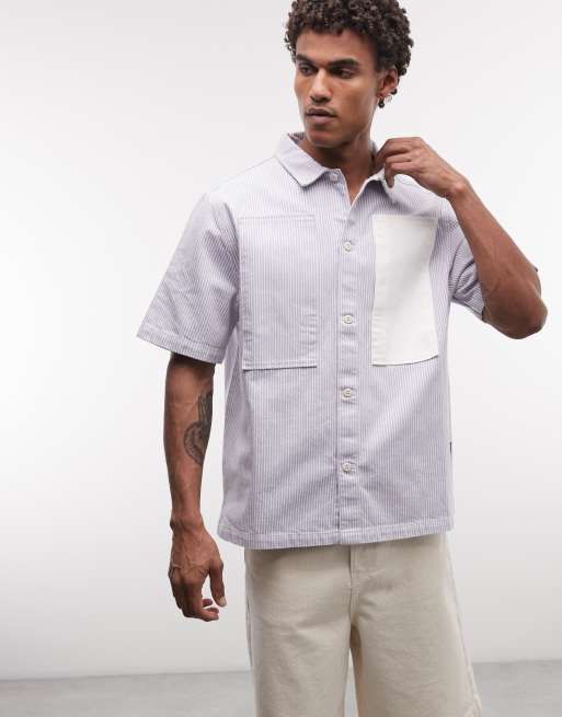 Stan Ray - Gestreept overhemd met korte mouwen in blauw