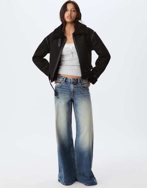Pimkie - Pilotenjack met voering van imitatie schapenvacht in zwart