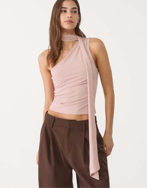 Stradivarius - Asymmetrische top van tule met sjaal in lichtroze