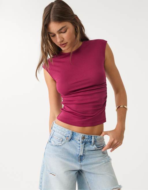 Stradivarius - Basic - Aansluitend T-shirt met rimpeleffect in bordeauxrood