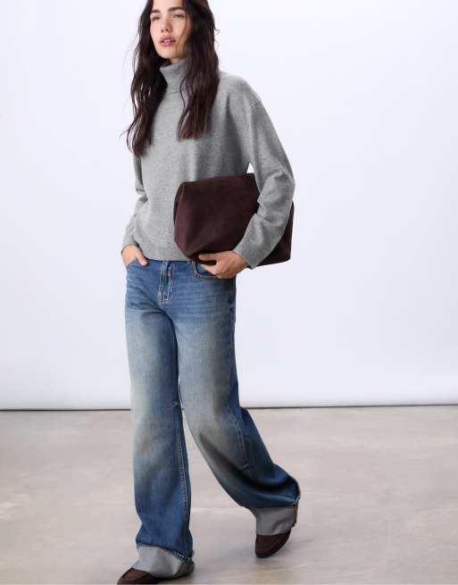Stradivarius - Basic trui met hoge hals in grijs
