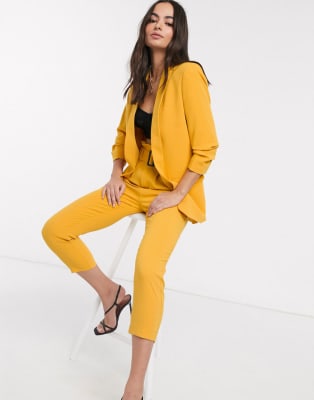 Stradivarius - Blazer met ruches en broek in okergeel