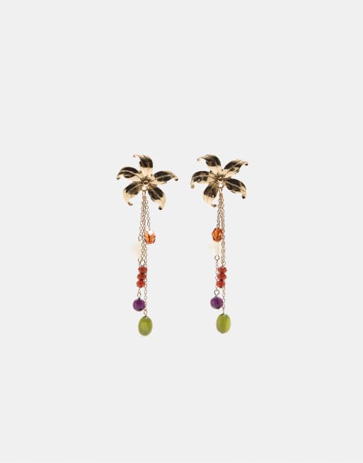 Stradivarius - Bloem-oorbellen met kralen in goud