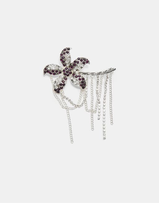 Stradivarius - Broche met bloem en strass in grijs