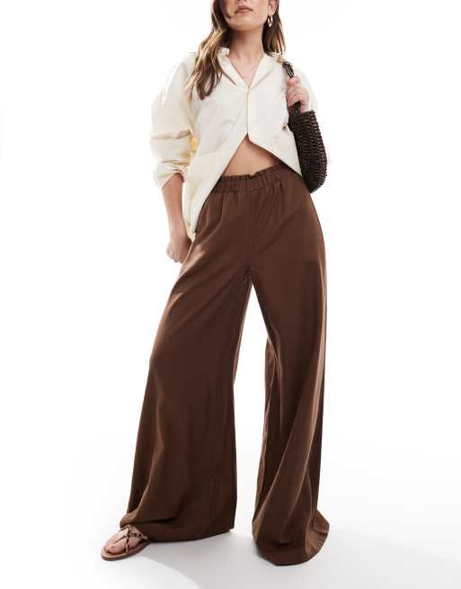Stradivarius - Broek met wijde pijpen van kreukelstof in bruin