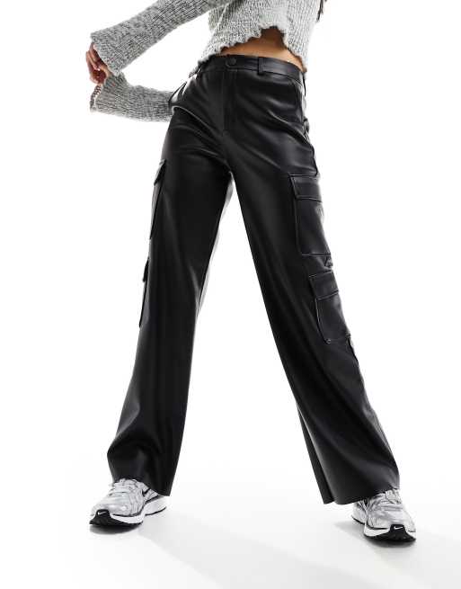 Stradivarius - Cargobroek van imitatieleer in zwart